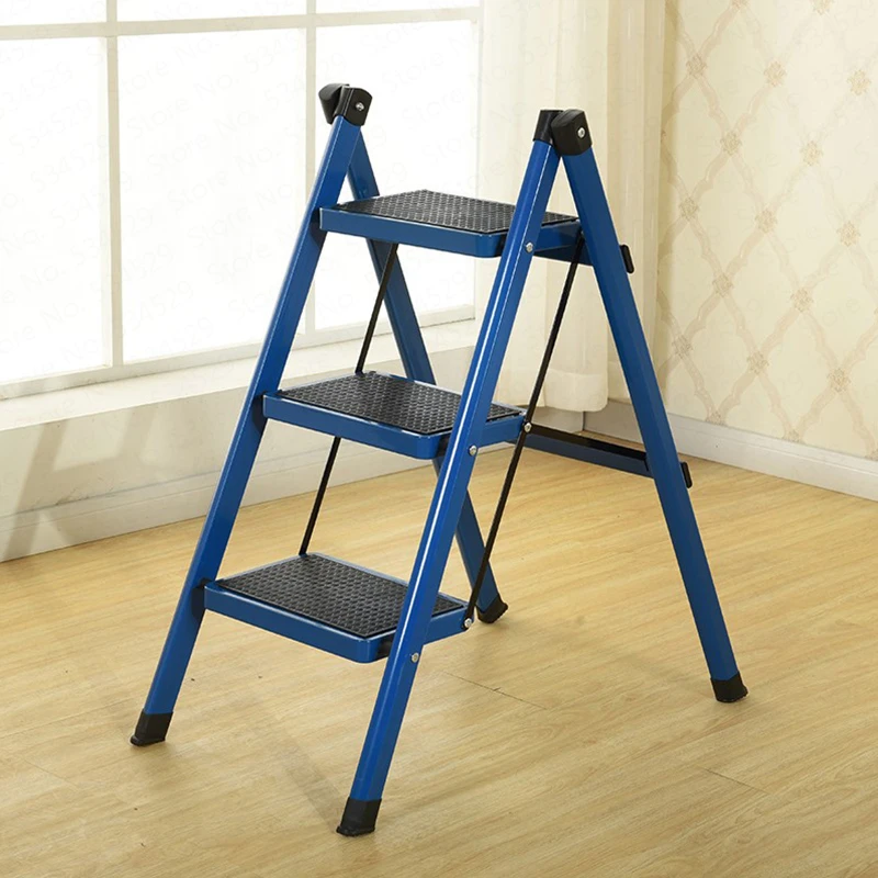 Folding Step Ladder Stool Three-step Thickened Iron Pipe Indoor Ladder Three-step Ladder Kitchen La