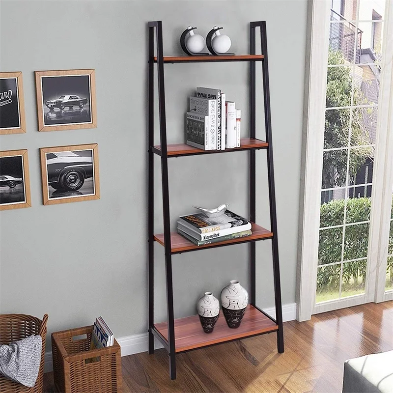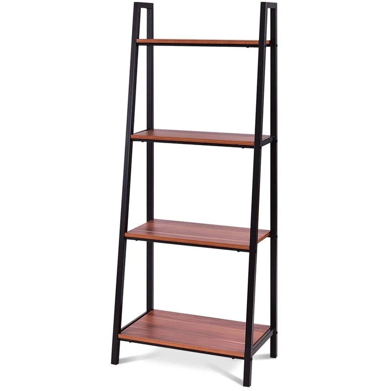 4-Tier Durable Ladder Storage Bookcase High Quality Sturdy Iron Frame Book Shelf Furniture Organize